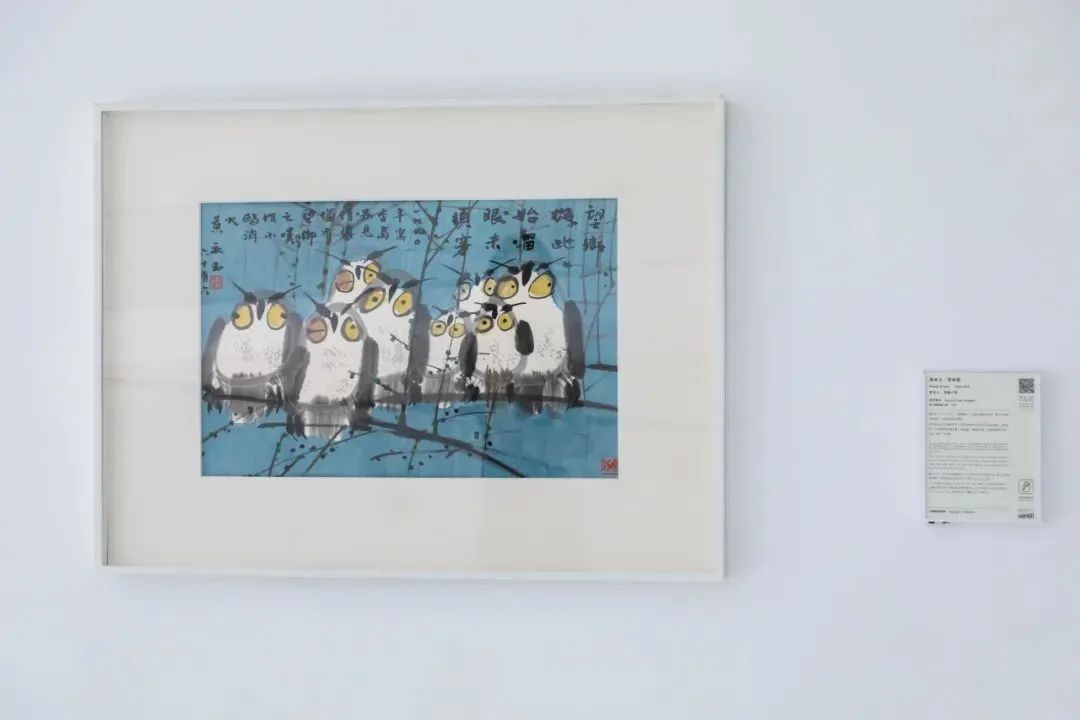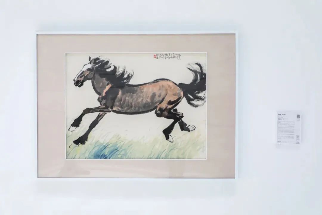 “画坛鬼才”黄永玉的《望乡情》也在这里,画面借用八只造型抽象、表情夸张的猫头鹰,寄托了游子对于故乡的依恋和情怀,用笔简单灵动充满童趣。大眼圆睁的猫头鹰既俏皮可爱又有望眼欲穿之感。更有徐悲鸿的《天马凌云》,画中马躯涂赭红,坡地以青绿敷之,碧草茵茵,设色鲜亮明快,奔马从远处疾驰而来,奋蹄如飞,鬃毛在风中飞扬,意气风发,充满鼓舞人心的力量。