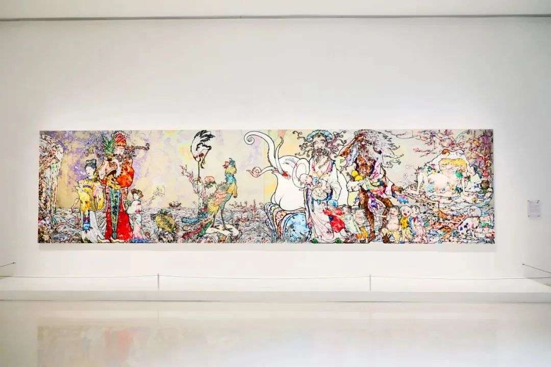 如村上隆《历经磨难方成佛》,以日本鬼怪为原型,运用仙人、鸟兽、仙女仙童、怪物等元素,诉尽人世间的各种欲望与罪恶,通过夸张的色彩与画法将佛与魔展现出来。同样引人注目的还有安塞姆·基弗,这幅《致英格博格·巴赫曼:游戏已终局》,画面巨大和复杂的肌理使作品充满了力量,还在画布上像雕刻一样书写了巴赫曼《游戏已终局》这首诗的部分诗句,给人以震撼的视觉冲击力、