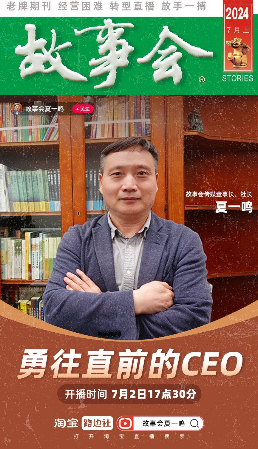 《故事会》竟然还活着?这本伴随几代人成长的国民读物,随着书报亭的消失和大众阅读习惯的变化,也淡出了大众视野。日前,《故事会》官方发出一条推送,透露其董事长、社长即将转战淘宝开播,引起广大网友的关注。当初几乎人手一本《故事会》,如今面临经营困难、亟待转型的窘境,社长夏一鸣有意通过跨界直播,为这本几乎销声匿迹的老牌杂志,谱写新的故事。