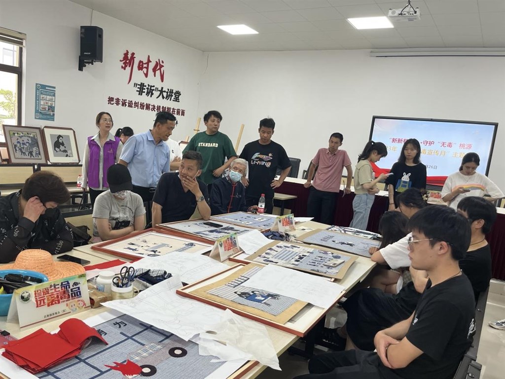 为了进一步扩大法治宣传的覆盖面与影响力,吕巷镇精心策划了土布贴画作品巡展活动。画册不仅被分发至各村居,供村民们细细品味,更将精选的作品送至十二个村居进行巡回展览。