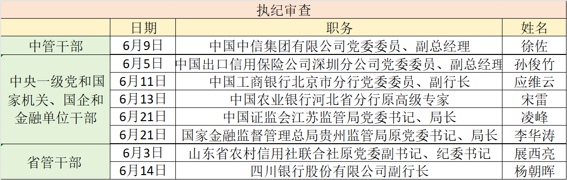 金融反腐追踪|6月至少8人被查,涉1名中管干部、2名监管干部