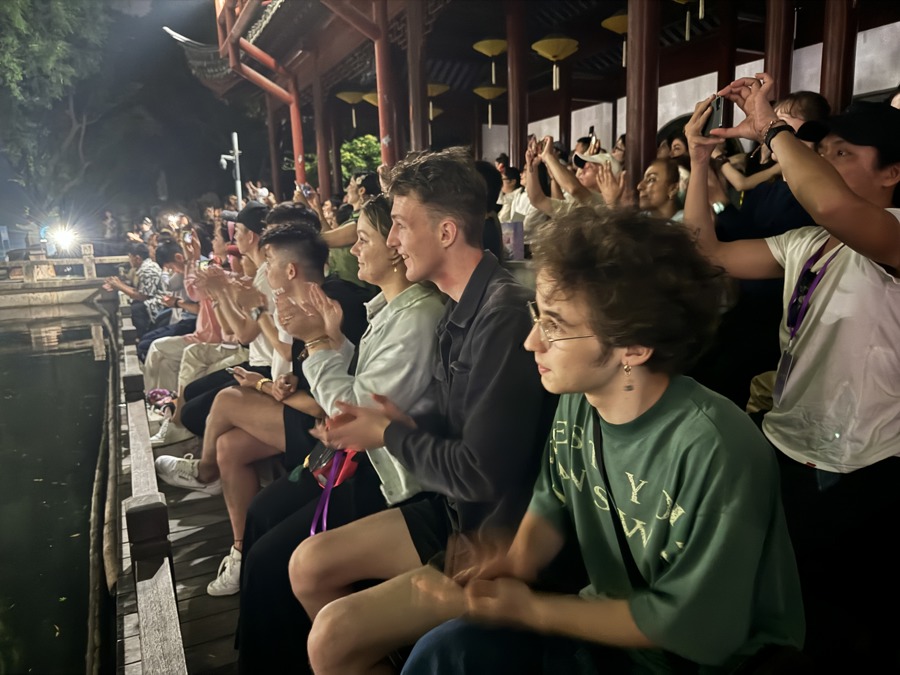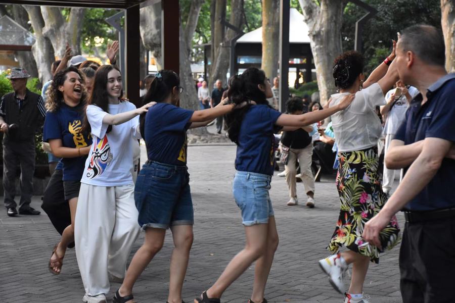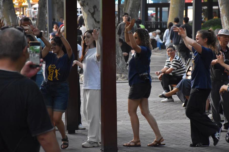 由上海市教委资助的“上海暑期学校戏曲课程”,自2011年起已在上戏举办十三期。2024年暑期课程招收逾30名外国学生,分别来自瑞士、匈牙利、北马其顿共和国、俄罗斯、黑山、法国、巴西、哥伦比亚、土耳其、新加坡、菲律宾、印度、斯里兰卡、印度尼西亚、伊朗、新西兰、英国等17个国家。他们中,有中国文化爱好者,也有完全不懂中文、第一次来中国的初体验者。与时下热门的144小时过境免签特种兵旅行不一样,这群外国学生在上海深度体验中国,学戏、看海派木偶、组团去迪士尼乐园、在静安公园起舞,感受上海现代与传统交织的都市魅力。