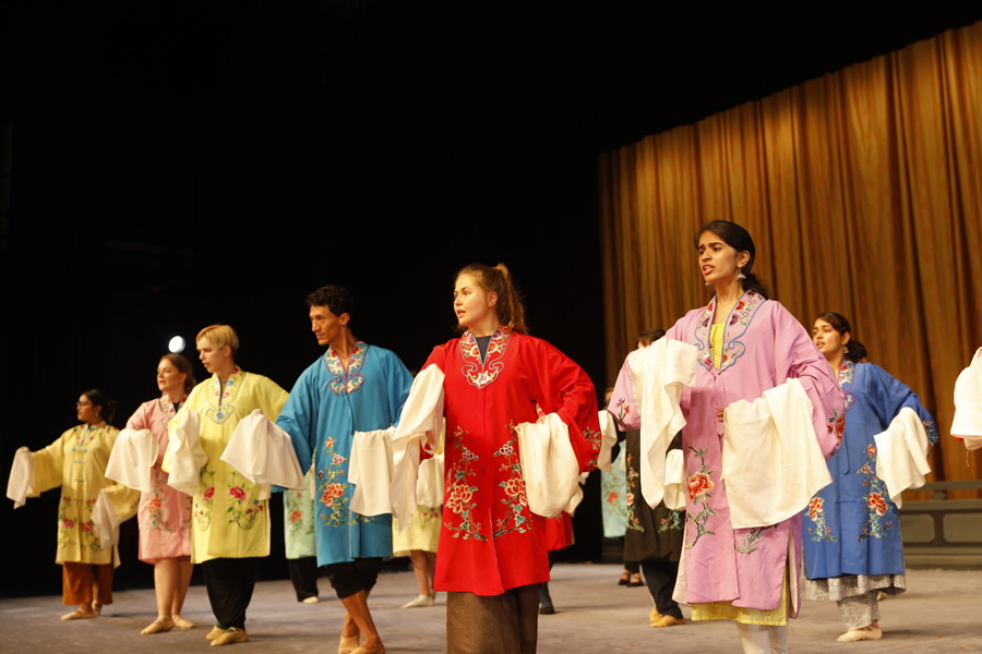 到了汇报演出,李秋萍每到音乐高潮处就冲到台前打拍子,示范有难度的动作,“真的,我教得辛苦,他们也学得辛苦。我鼓励他们,‘来中国这一次,我们都不忘初心。’”