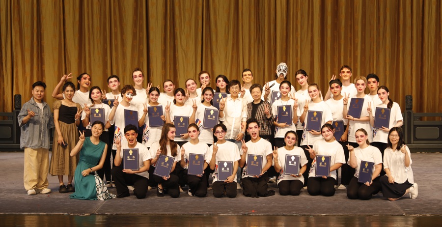 第十四届“上海暑期学校戏曲课程”近日在上海戏剧学院附属戏曲学校结业,来自17个国家的外国学生经过近一个月学习,登台表演《赵氏孤儿》《拾玉镯》《梨花颂》等。台上演员们眉飞色舞,尽情展现,台下老师们时而哼着锣鼓点打节拍,时而从观众席“跳”起,手舞足蹈做示范。