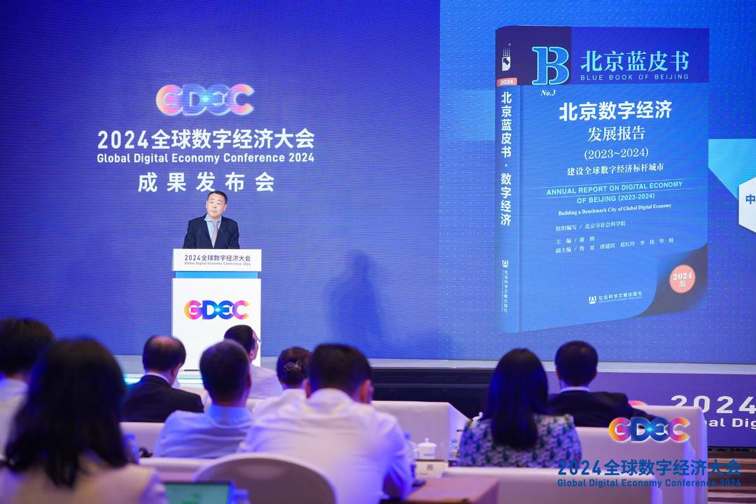 7月5日,在“2024年全球数字经济大会”成果发布会上,北京市社会科学院发布了《北京数字经济发展报告(2023-2024)》蓝皮书(以下简称“蓝皮书”)。在市经信局、市统计局等单位指导支持下,由北京市社会科学院牵头清华大学、中国信通院、国家工信安全研究中心、中国联通研究院、北京工商大学、中企华、世通咨询等机构组成的联合课题组,连续三年持续追踪北京全球数字经济标杆城市建设发展情况,开展相关理论和实践探索,以期为数字经济高质量发展贡献“智库力量”。