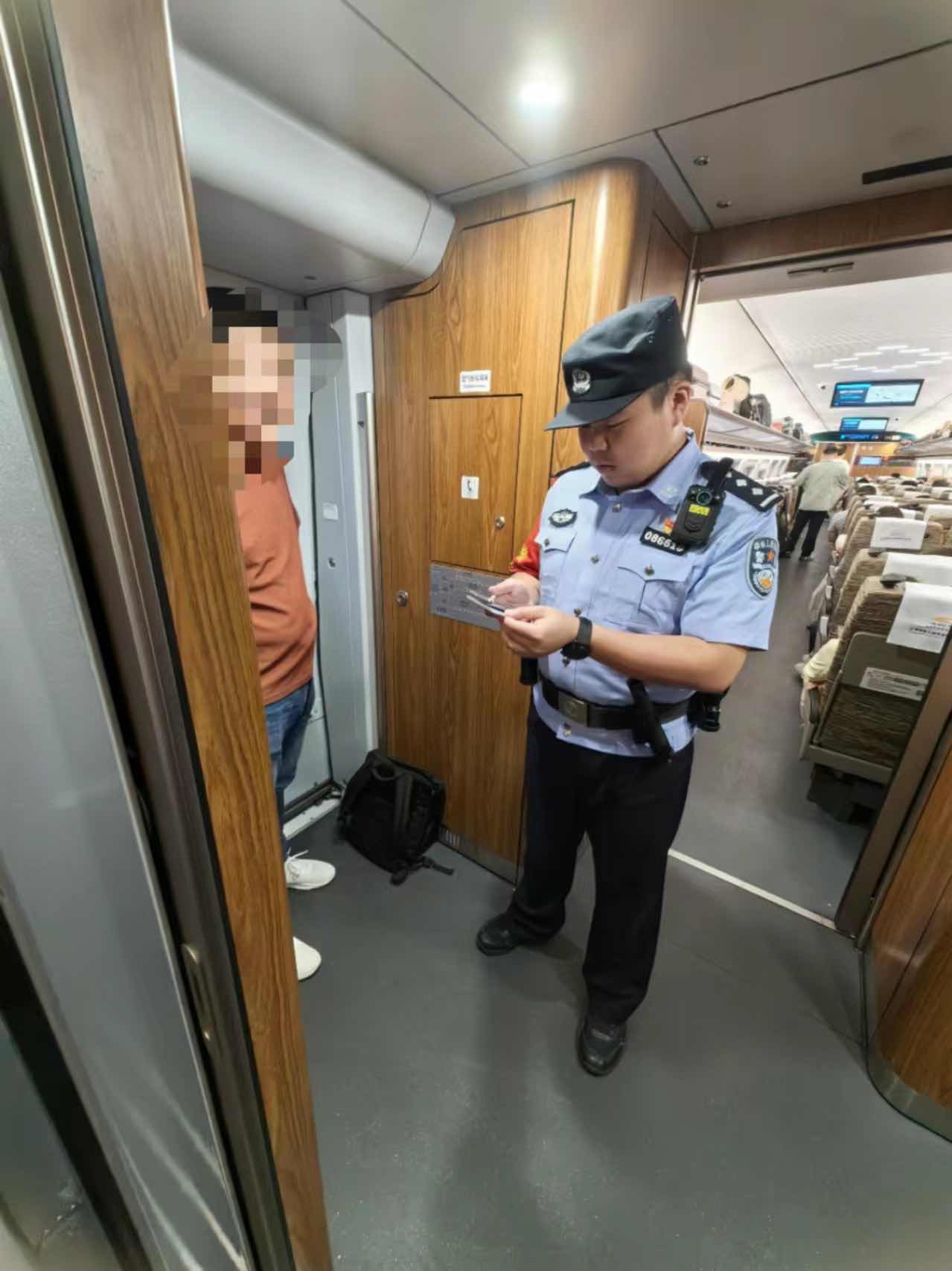 澎湃新闻(www.thepaper.cn)记者从上海铁路公安获悉,7月6日15时20分许,在重庆北开往上海虹桥的D2214次列车上,一男子拒不听从列车工作人员劝阻,在11号车厢厕所吸烟,触发烟雾报警,致列车降速缓行,后被乘警查获。