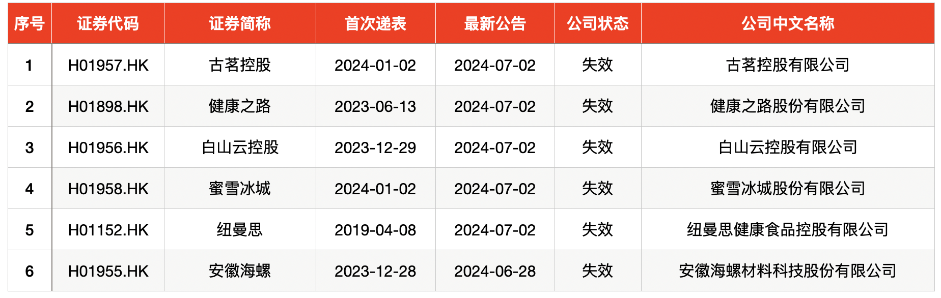 上周未有企业递交招股书,但有多家公司招股书失效,包括两家新式茶——饮古茗控股有限公司以及蜜雪冰城股份有限公司,此外,健康之路股份有限公司、白山云控股有限公司、纽曼思健康食品控股有限公司、安徽海螺材料科技股份有限公司亦失效。