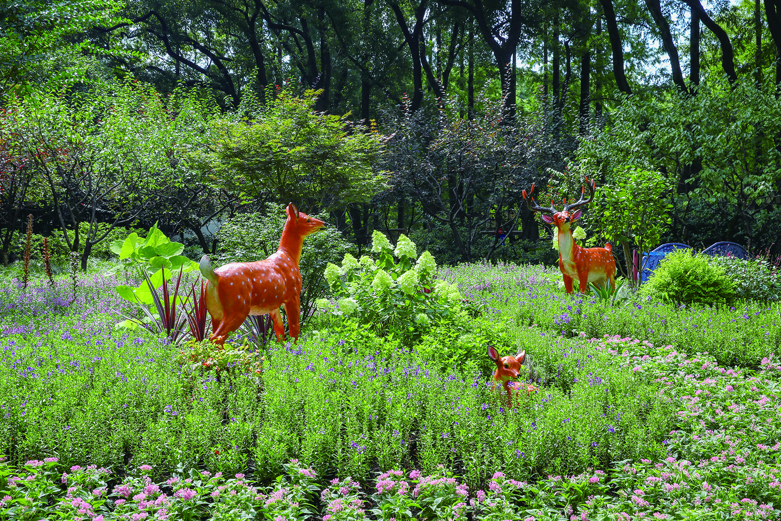 眼下,上海醉白池公园的花境已“上新”。图为位于醉白池公园竹园附近以“盘古阅今,相宜美好”为主题的特色园艺景点,该景点以植物元素为主,并配置了象征“茸城”的梅花鹿。