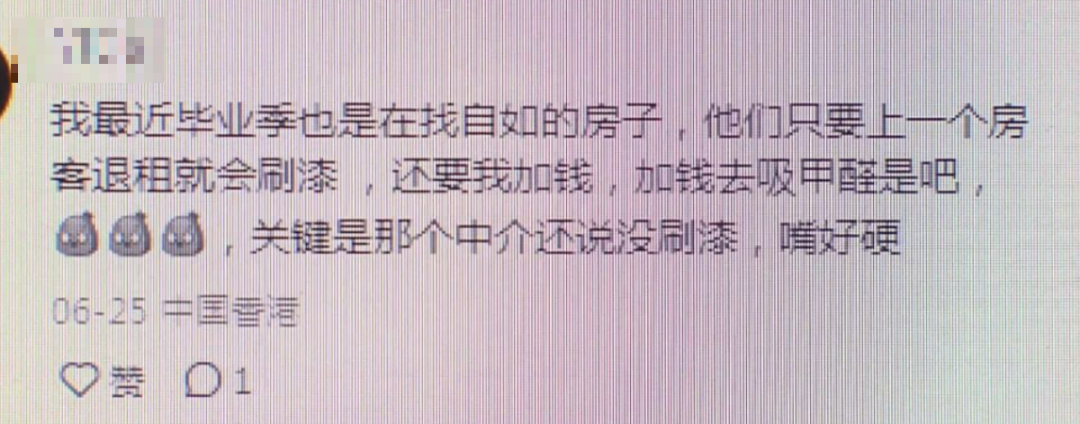 截至发稿,记者仍未收到公寓方面的回复。而在社交媒体上,反映自己租到甲醛房的房客不在少数。