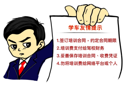 2.切勿以“低价”或“熟人介绍”作为首选条件,切勿将学车培训费用私下交给教练员或中介等个人。