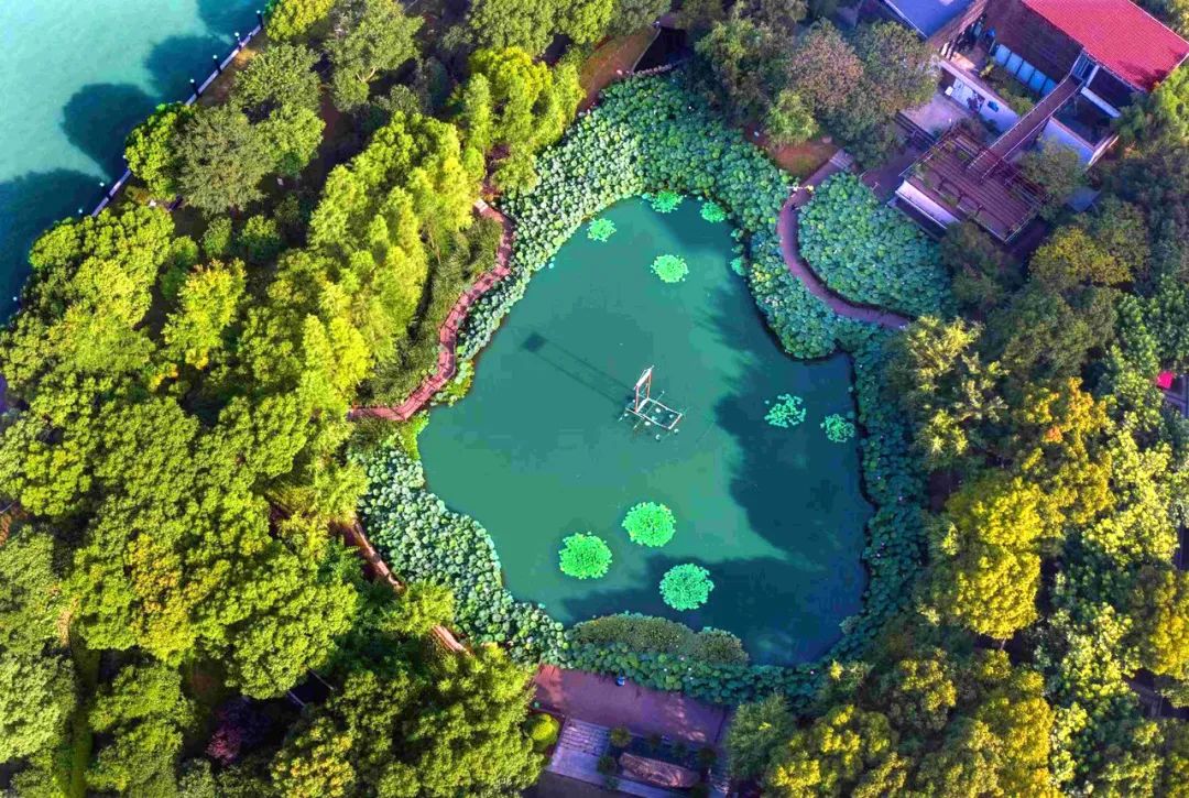 陈家山荷花公园占地面积30亩,绿化面积占65%。公园在设计上传承了原址明代初年颇具规模的陈家山园林历史文化及景观,并融入具有时代特征的现代景观元素,着力突出“人与自然的和谐共处”。