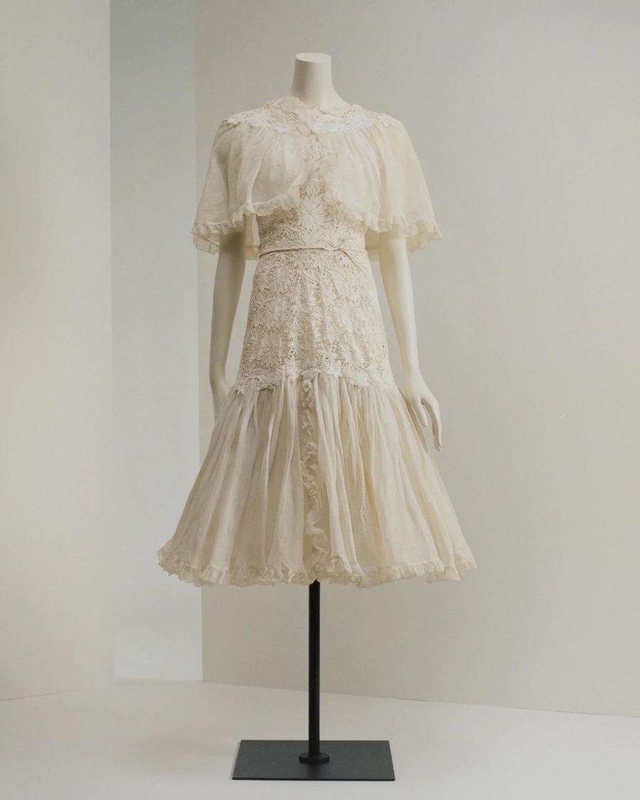 连衣裙,1962年,棉质凸花蕾丝,蝉翼纱。巴黎市立时尚博物馆加列拉宫。© 香奈儿 / Julien T. Hamon