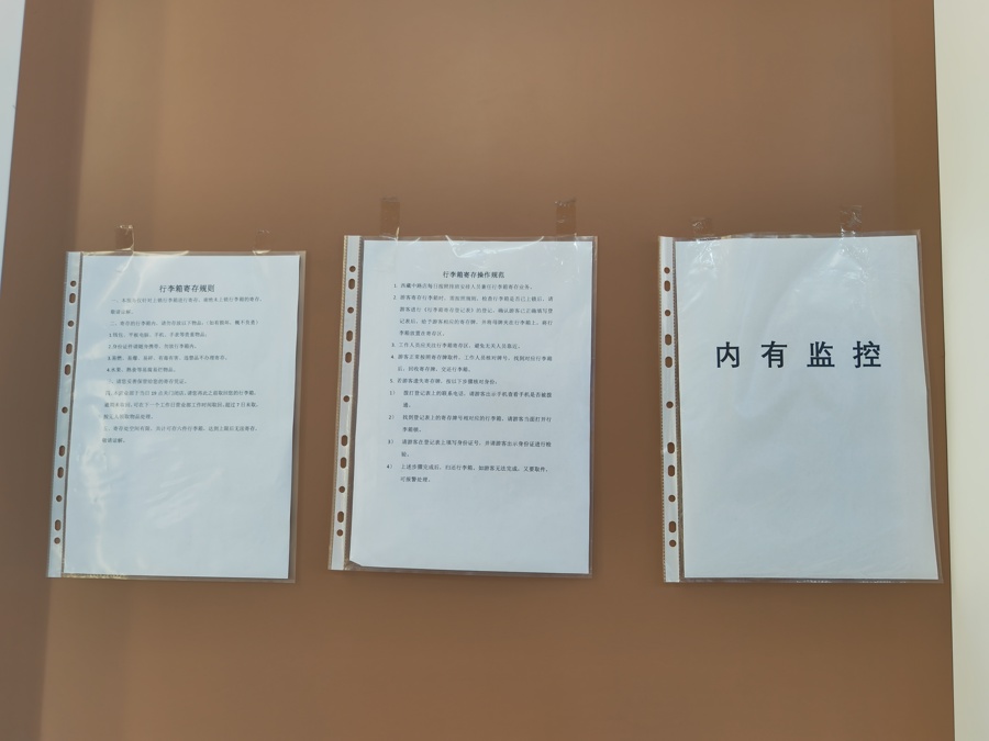 春秋旅游西藏中路门店的免费寄存区域及寄存注意事项。 李宝花 摄