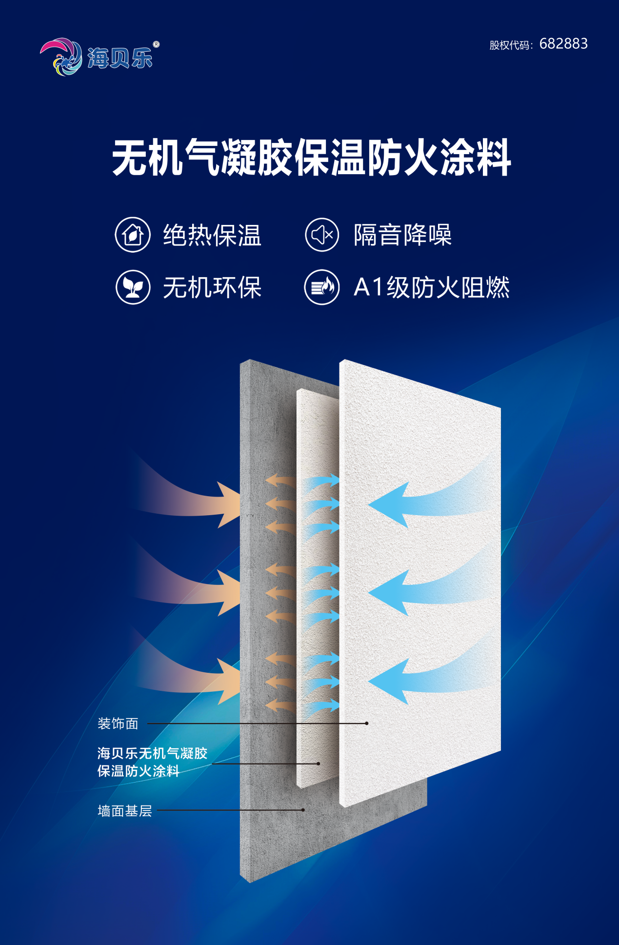 海贝乐无机气凝胶保温防火涂料是达到A1级防火阻燃的无毒无味的保温涂料,由世界上最轻的固体-气凝胶及多种新材料研发而成,颠覆传统保温方式,从建筑物内部着力,减慢动能传输、降低热量流失,达到节能减排效果。环保性能极佳,不含甲醛、VOC,具有A1级防火性能,先创性地突破了保温涂料的技术瓶颈,解决了目前市场上保温材料高效、节能、坚固、耐久与防火安全难以兼得的本质问题。施工更加简单方便,工期短、施工成本低;外加优异的疏水、防水性能,漆面整体无缝、无热桥形成,远离空鼓开裂。
