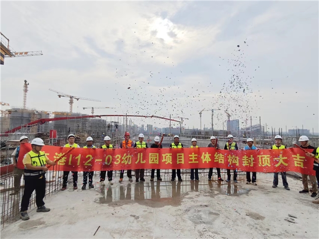 7月10日,随着最后一方混凝土浇筑完成,中建八局临港I12-03幼儿园项目主体结构全面封顶,标志着项目建设取得了阶段性胜利,项目正式步入二次结构及装饰装修阶段。
