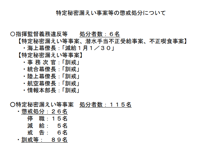 本次泄密违纪事件日本防卫省的处罚决定日本防卫省