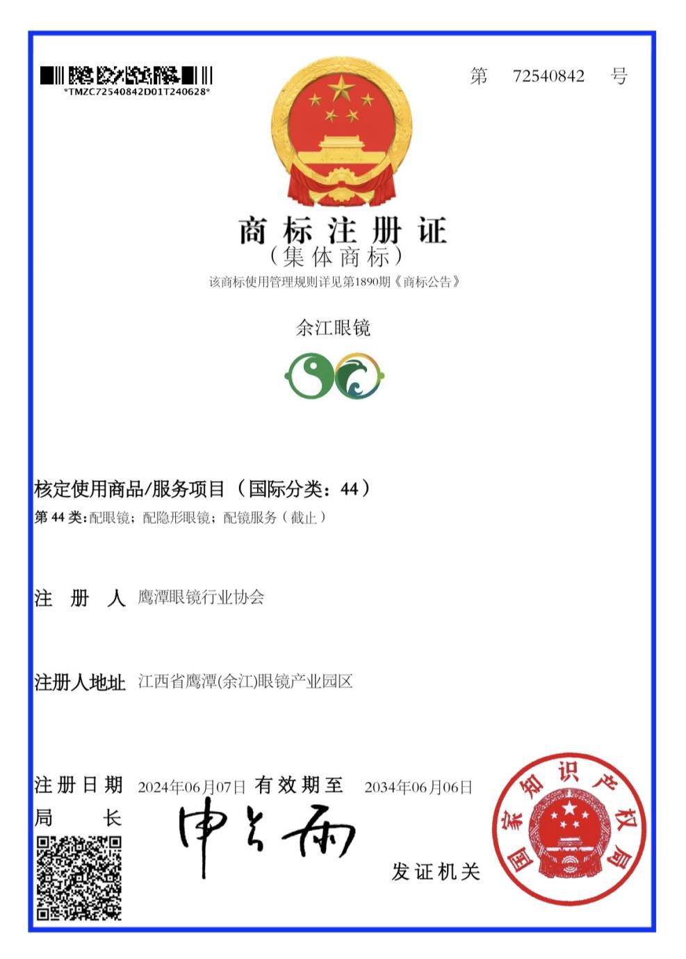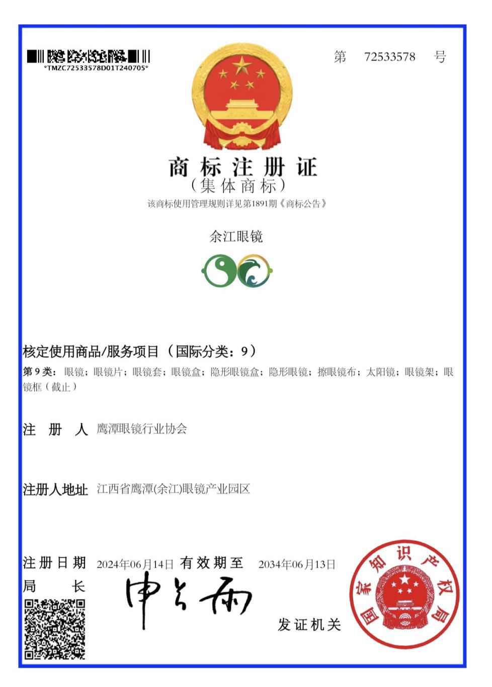 中国质量新闻网讯 近日,由鹰潭眼镜行业协会申报的“余江眼镜”集体商标通过国家知识产权局商标局审批,成为江西省鹰潭市唯一以县域名称做标识的集体商标,填补了鹰潭市无集体商标的空白。