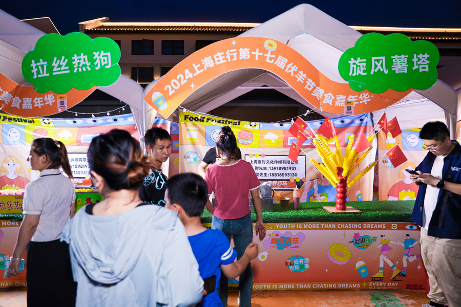 “为期45天的活动期间,音乐美食(伏羊)广场每晚都会开展演出活动,包括乐队驻唱、音乐弹唱,还有变脸、摇滚、杂耍等,用文艺演出为食客们助兴,也让夜经济为沪郊乡村注入活力,吸引更多年轻人走进乡村。”庄行镇相关负责人说。