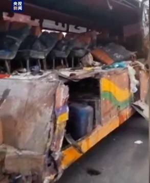 当地时间7月12日,肯尼亚一辆从首都内罗毕开往曼德拉郡的巴士在卡通巴地区附近与卡车相撞,造成10人死亡。(总台记者 李晔)