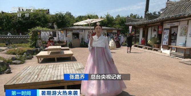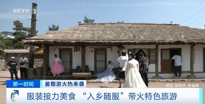 总台央视记者 张嘉乔:我身上穿的是朝鲜族服饰,吉林延吉市中国朝鲜族民俗园内,大多数游客都会穿上这样一身具有特色的朝鲜族服饰在园区内打卡拍照,参与体验当地的民俗活动。