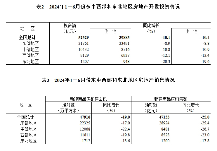 1—6月份,房地产开发企业房屋施工面积696818万平方米,同比下降12.0%。其中,住宅施工面积487437万平方米,下降12.5%。房屋新开工面积38023万平方米,下降23.7%。其中,住宅新开工面积27748万平方米,下降23.6%。房屋竣工面积26519万平方米,下降21.8%。其中,住宅竣工面积19259万平方米,下降21.7%。