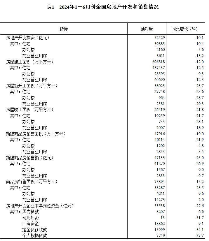 国家统计局:上半年房地产开发投资52529亿元,同比降10.1%