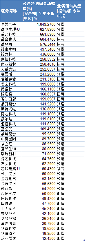 上市公司半年度业绩预告披露已进入高峰期,多家科创板公司业绩预喜。