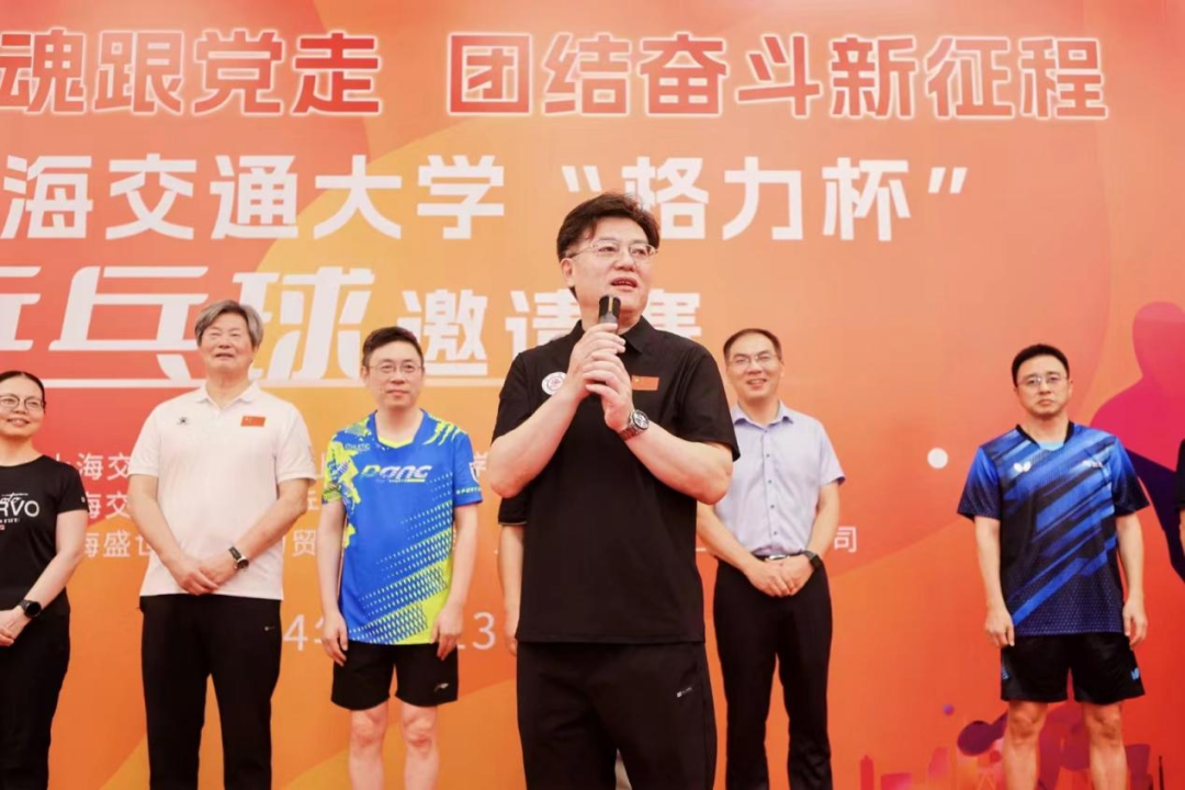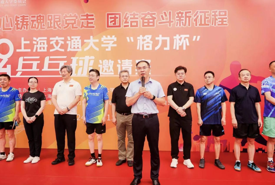 赖天荣代表支持单位致辞。他表示,“格力杯”乒乓球邀请赛,既是一场运动盛会,也是教学、科研和产业的一种良好融合、互动和交流,希望格力集团和上海交通大学继续保持紧密友好合作,产出更多成果,并预祝比赛圆满成功。