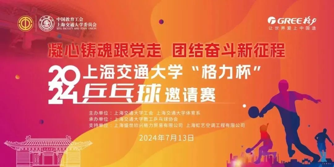 7月13日,由上海交通大学工会、体育系主办,教职工乒乓球协会承办,上海盛世欣兴格力贸易有限公司、上海虹艺空调工程有限公司赞助支持的“格力杯”乒乓球邀请赛在上海交通大学致远游泳馆举行。本次大赛参加的代表队包括上海交通大学、南京大学、中国航发商发、中国光学乒协、上海航天局、上海报业集团、东方有线、闵行医务卫生系统、闵行江川路街道、大零号湾、上海广发证券、崇明乒协等12家单位,近150位选手参加了比赛。