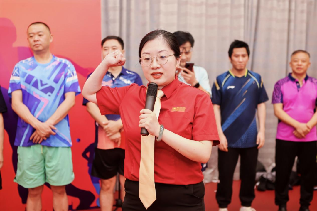 上海市乒协靳小芊代表全体裁判员宣誓。