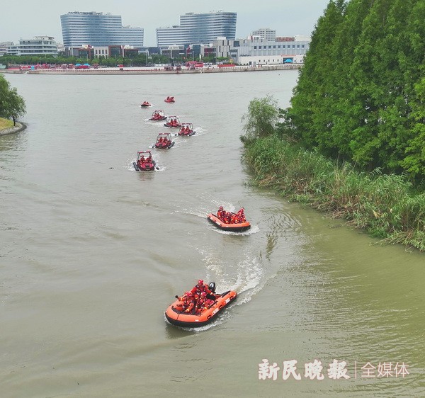 随着汛期的到来,上海消防救援总队水上支队日前在浦东新区在森兰绿地水域支队开展跨区域抗洪抢险无预案拉动演练。