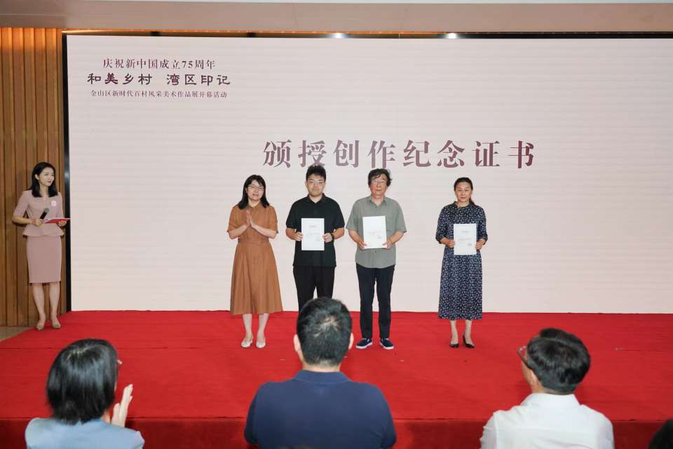 仪式上,参展画家代表被颁授创作纪念证书,并畅谈创作感受。每一幅作品风格多样、百花齐放,都凝聚了画家们对乡村文化的深厚情谊,也让人领略到金山区不同的乡村景致与别样风采。