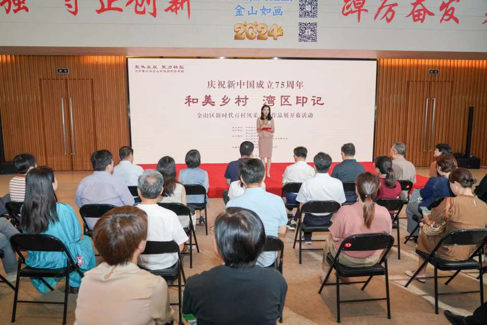 据悉,为庆祝中华人民共和国成立75周年,金山区推出“和美乡村 湾区印记”新时代百村风采美术作品创作活动,邀请一批市、区两级美术家协会知名画家,聚焦金山区124个村的地标、物产、特色亮点等精心创作画作124件。作品以匠心独运的艺术画面,记录人民生活和美、“三个湾区”建设朝气蓬勃的时代图景,落实“三个百里”重要指示的实践与成效。