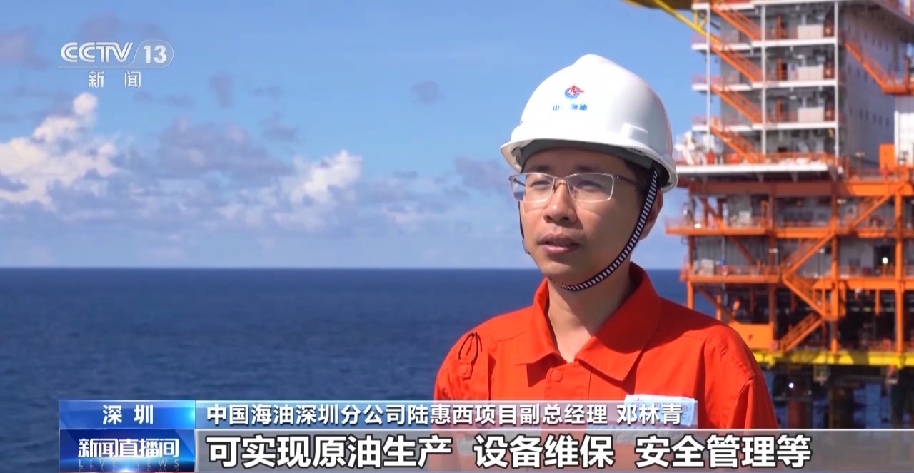 中国海油深圳分公司陆惠西项目副总经理邓林青:平台应用多项数字化工艺,可实现原油生产、设备维保、安全管理等多个场景的智能化,较传统项目增设智能一体机与中央控制系统,组成“双大脑”结构,可对智能仪表和机械设备进行健康管理,减少人为干预,使远程操作更加智能可靠。