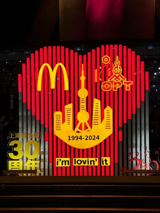 东方网7月18日消息:近日,上海麦当劳浦东南路新梅广场餐厅正式开业,共庆上海麦当劳30周年。自1994年淮海路首店开业至今,上海麦当劳已遍布16区,餐厅数量达到500家,陪伴着一代又一代上海小囡的共同成长,成为上海市民生活的一部分。 7月18日20:00至21:00,东方明珠塔将为麦当劳上演专属亮灯秀;至8月15日,东方明珠塔下的城市广场还将展出共庆30周年打卡装置。