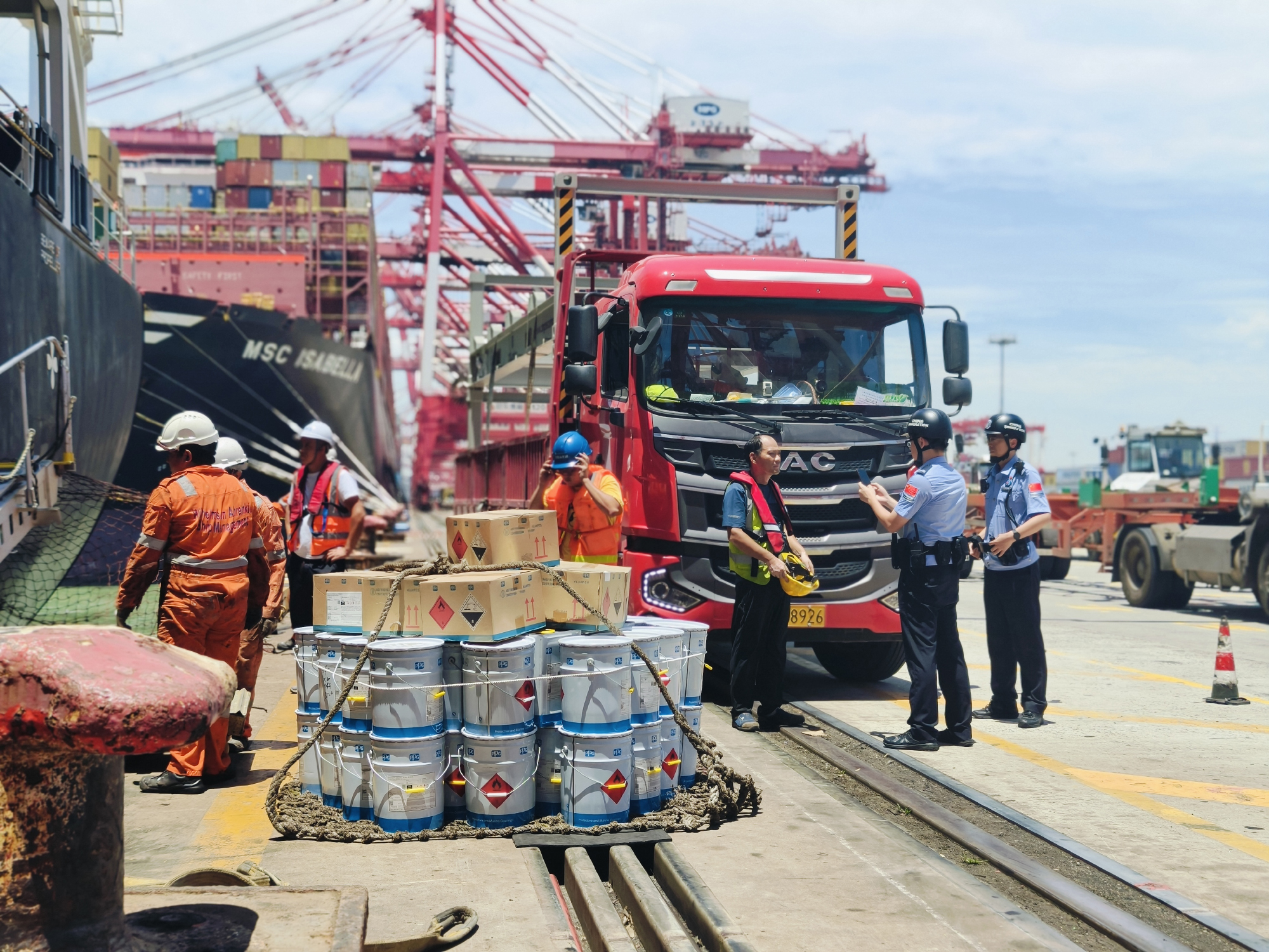 据洋山边检站数据统计,上半年,该站共查验入出境(港)国际航行船舶5000多艘次,同比增长约5.5%,入出境(港)人员超12.2万人次,同比增长约5.1%,双双创下洋山口岸运营以来同期历史新高。此外,边检机关签发的人员上下外轮、船舶搭靠外轮等行政许可8500多份,同比增长约1.6%;累计有6200多名国际航行船舶船员在洋山口岸办理登离轮换班手续,较去年同期大幅增长约46%。