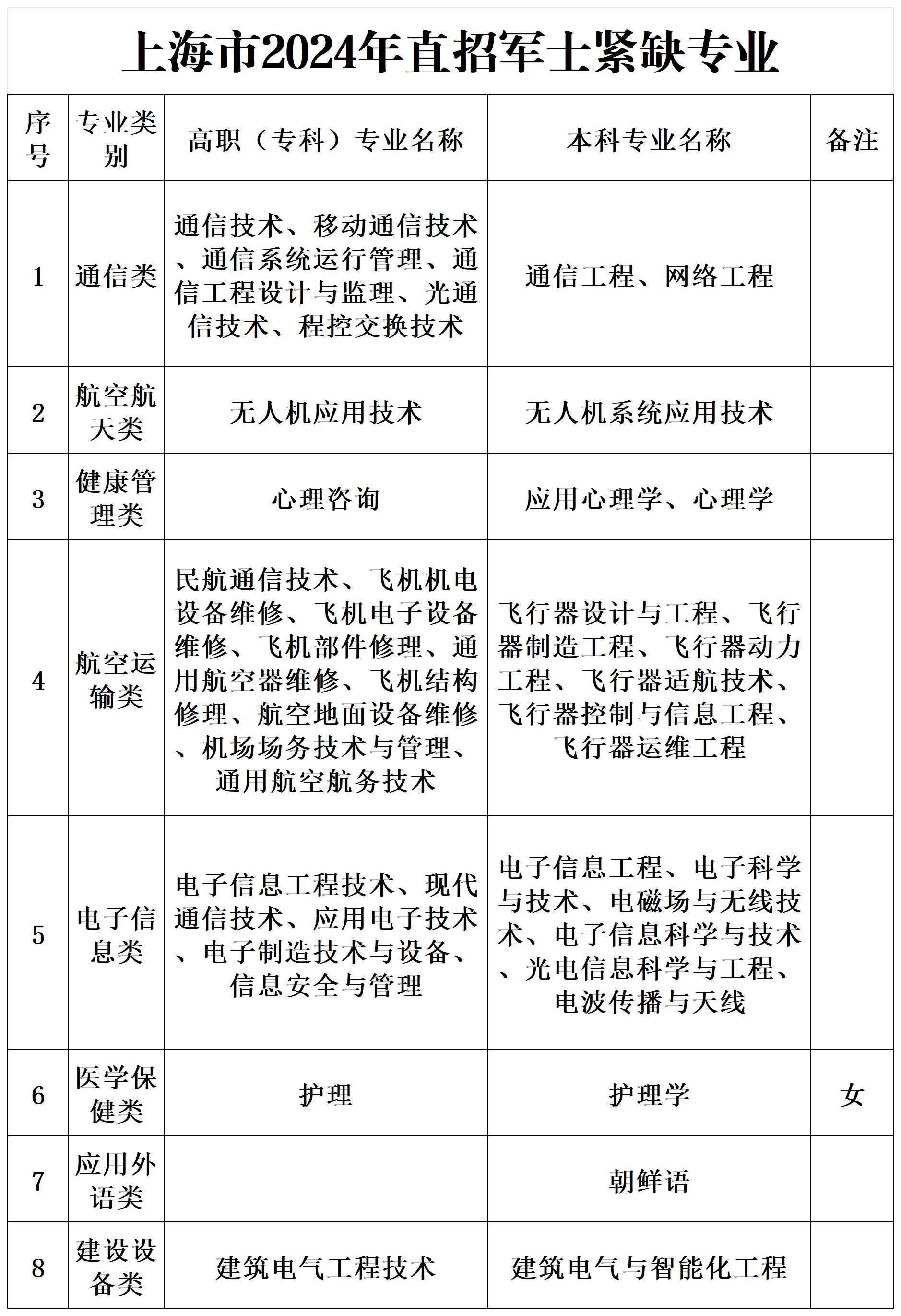 2024年在沪直招军士通告发布:这些紧缺专业优势很大!