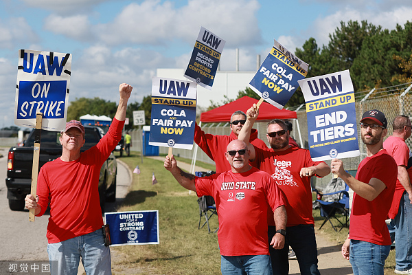 2023年9月,美国汽车工人联合会工人罢工。 视觉中国