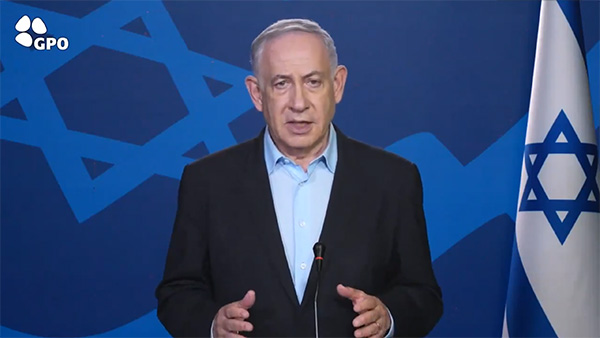 以色列总理内塔尼亚胡发表讲话 视频截图