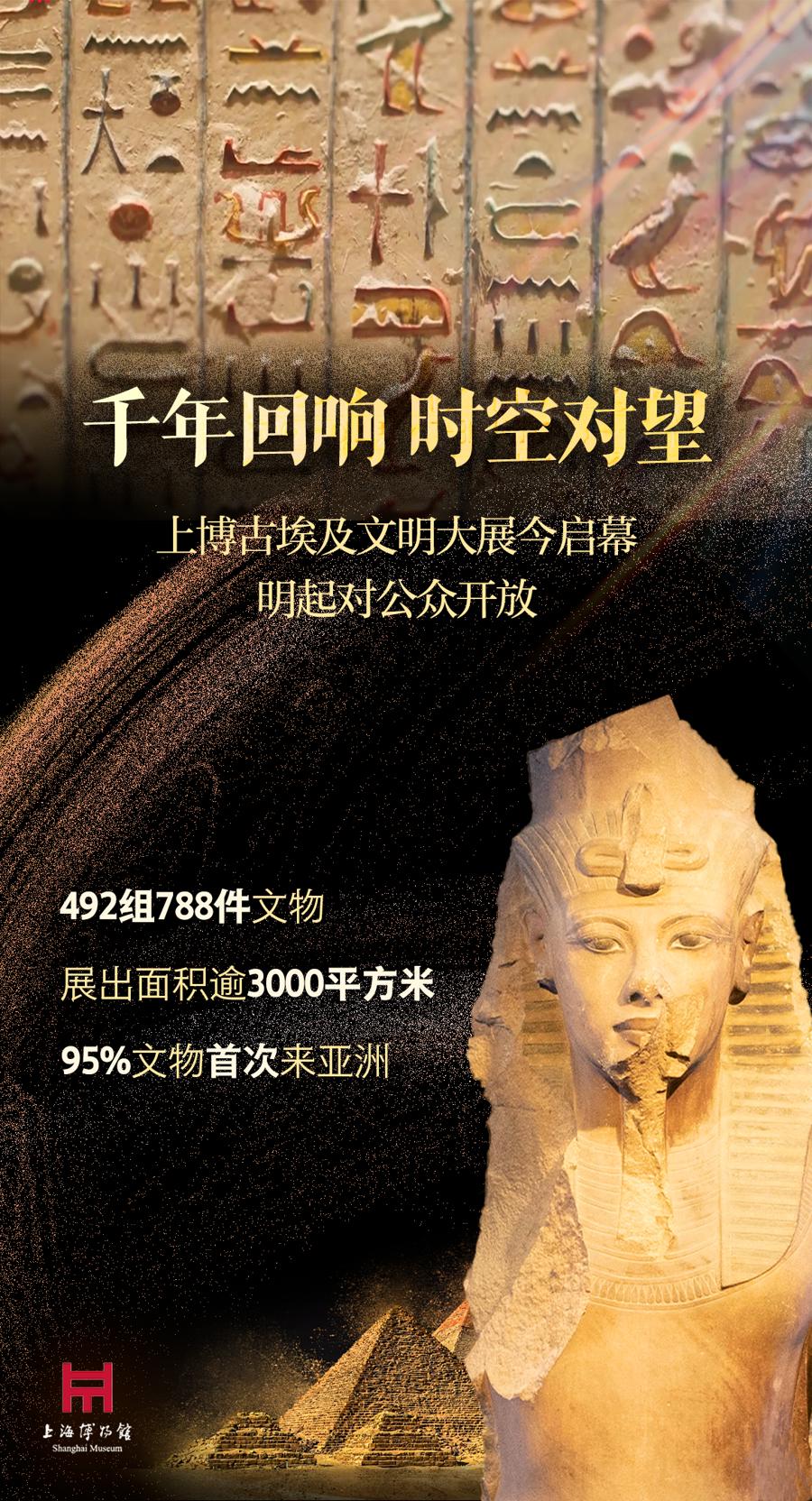 7月17日,“金字塔之巅:古埃及文明大展”在上海博物馆人民广场馆举行开幕仪式。展览由上海博物馆、埃及最高文物委员会联合举办,分为“法老的国度”“萨卡拉的秘密”“图坦卡蒙的时代”三个版块,汇集788件古埃及不同时期的珍贵文物,其中多数文物首次来到亚洲。