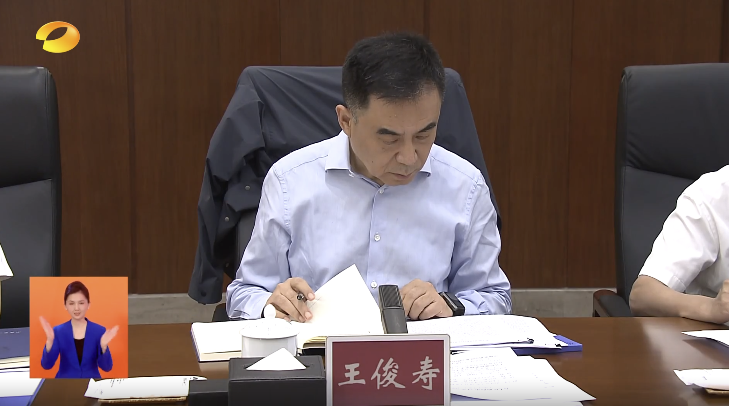 新闻画面显示,原国家金融监管总局上海监管局党委书记、局长的王俊寿出席了湖南省政府党组会议。 来源:湖南新闻联播画面