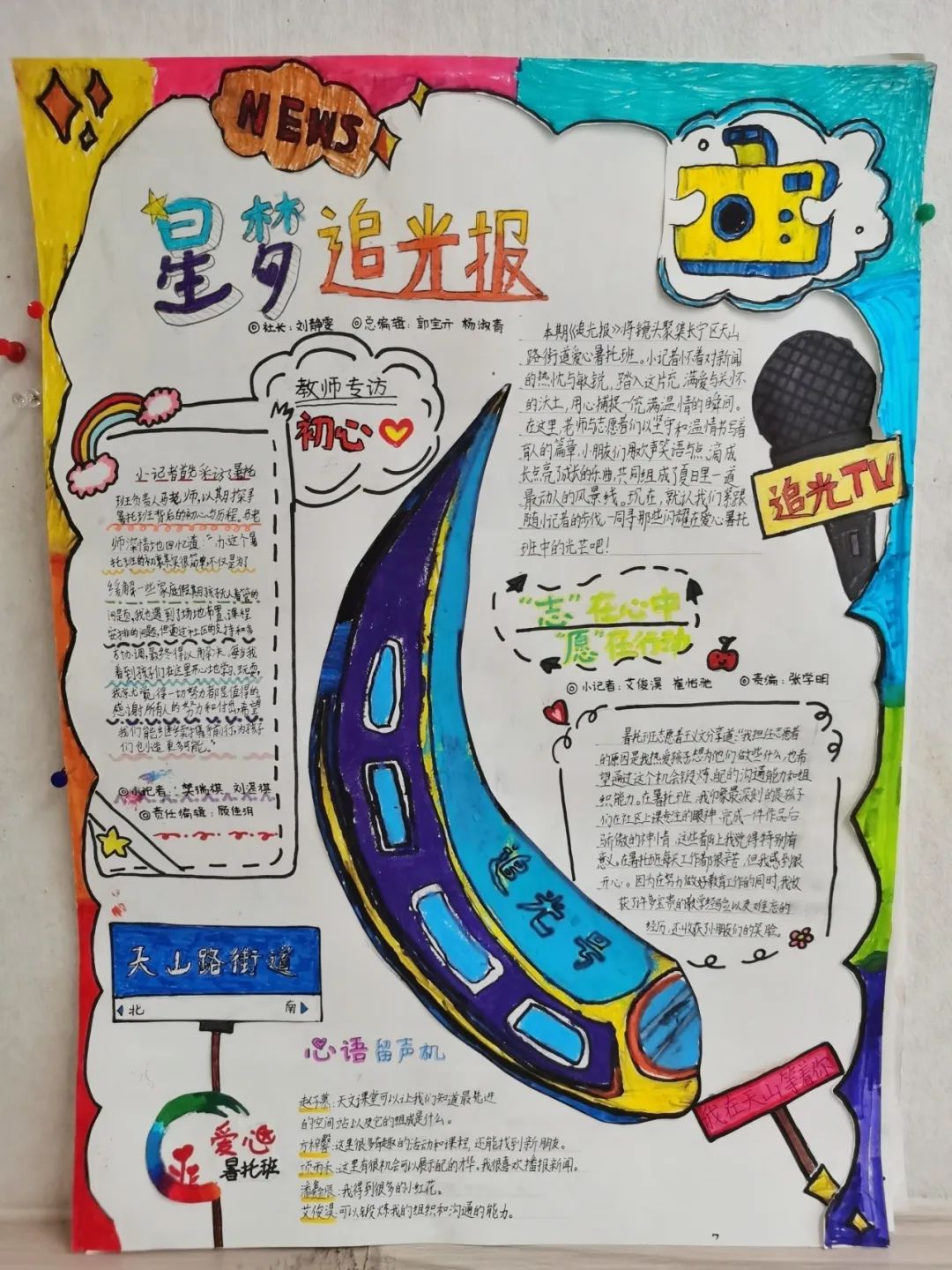 目前,三个班共6份《追光少年报》均在小学员的共同努力和志愿者老师的指导下编撰完成,待结业时,将印刷发放给家长,让他们了解孩子们的暑托班生活,感受他们的成长。