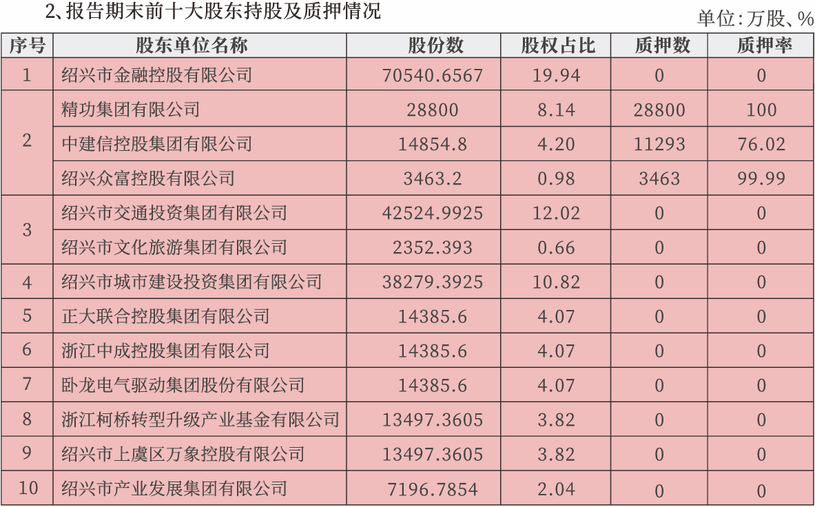 截至2023年末,绍兴银行前十大股东 来源:绍兴银行年报