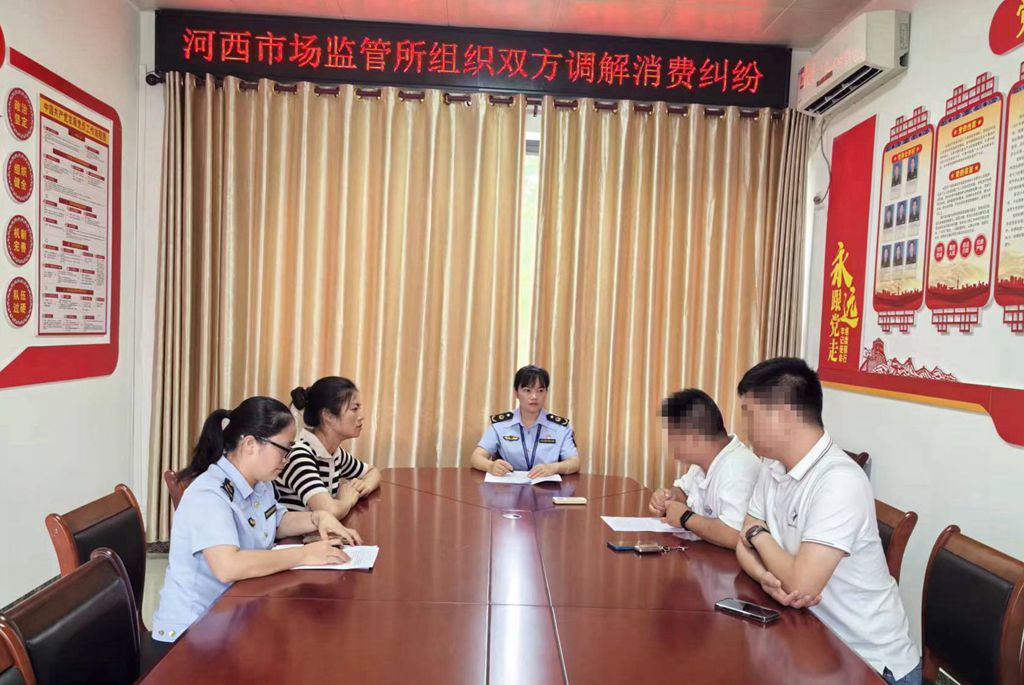 兴宾区市场监管局河西市场监管所工作人员在热情调解消费纠纷案件。