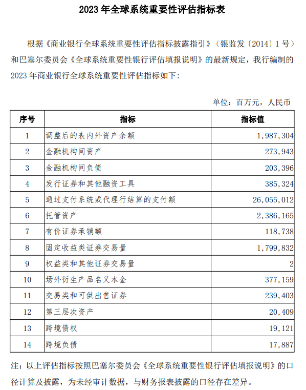 东方资讯消息,日前,渤海银行股份有限公司2023年全球系统重要性评估指标表发布。其中涵盖14项指标:调整后的表内外资产余额1,987,304百万元;金融机构间资产273,943百万元;金融机构间负债203,396百万元;发行证券和其他融资工具385,324百万元;通过支付系统或代理行结算的支付额26,055,012百万元;托管资产2,386,165百万元;有价证券承销额118,738百万元;固定收益类证券交易量1,799,832百万元;权益类和其他证券交易量2百万元;场外衍生产品名义本金377,159百万元;交易类和可供出售证券239,403百万元;第三层次资产20,409百万元;跨境债权19,121百万元;跨境负债17,887百万元。