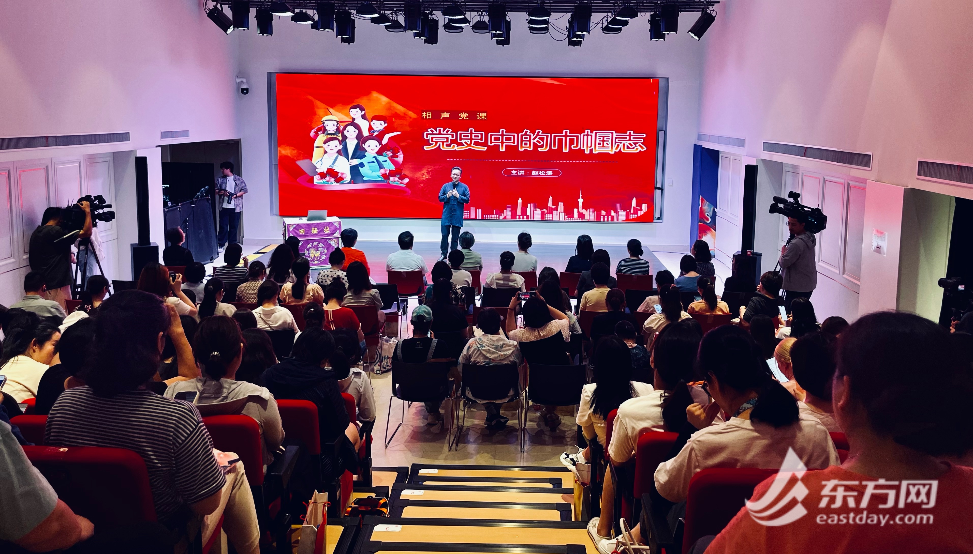 著名相声、快板书演员、上海市新的社会阶层人士联谊会副会长赵松涛,以《党史中的巾帼志》为主题,结合上海革命女性的红色故事开讲首堂相声党课。他说着相声,唱着快板,用通俗易懂的语言和生动的表演形式,明快的节奏搭配着押韵的句子,将党史中的巾帼英雄故事娓娓道来,生动展示了党的百年光辉历程中巾帼英雄们的无畏气概,彰显了不朽的巾帼力量。