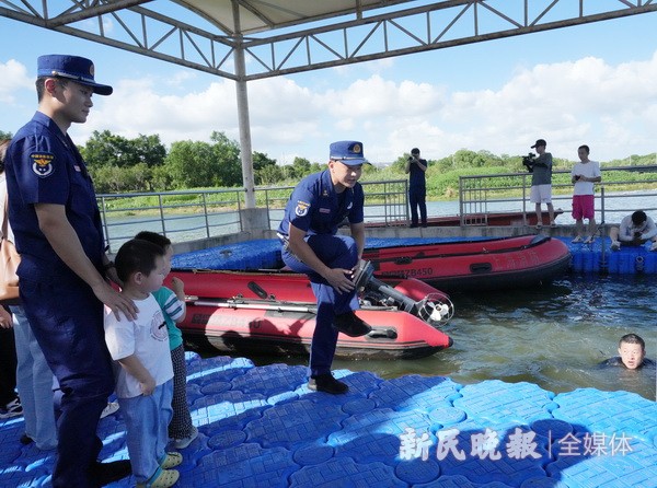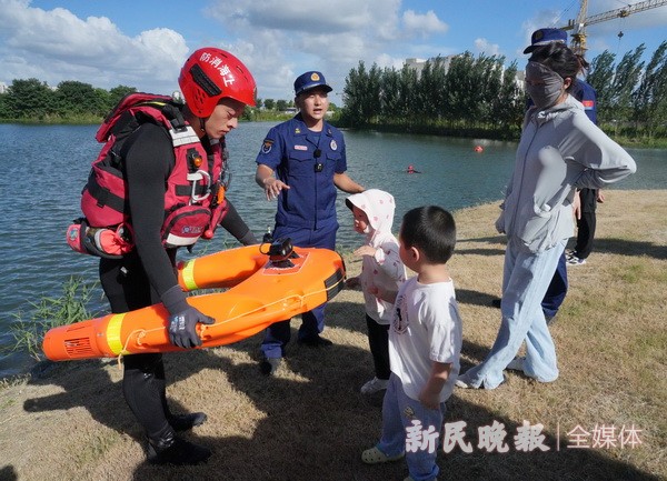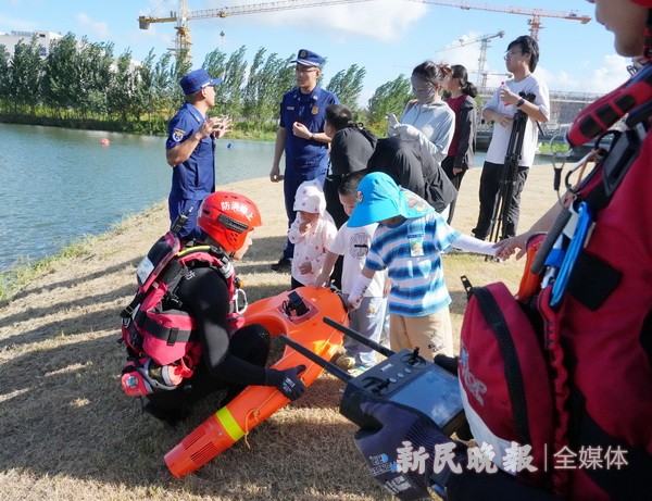 7月25日是世界防溺水日。随着夏日炎炎,溺水事故进入高发期,昨天下午,青浦区朱家角消防救援站举办了一场别开生面的暑期安全开放日活动。此次活动旨在提高公众特别是青少年的防溺水意识。活动伊始,一场深入浅出的防溺水知识科普讲座为家长们和孩子们敲响了警钟。实操互动环节将活动推向了高潮。消防员们凭借丰富的救援经验,现场演示了防溺水措施、自救和救援技能,并详细介绍了溺水人员上岸后的急救流程。此外,消防员们还展示体验了水域救援装备,如水域救援漂浮救生绳、水上救援机器人、水陆两用救援车等,让现场观众对水域救援有了更为直观的认识。