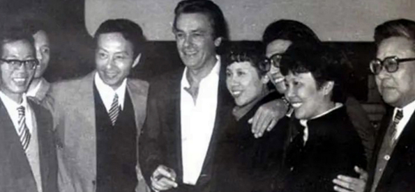 杨文元(左一)、童自荣(左三)等与阿兰·德隆合影