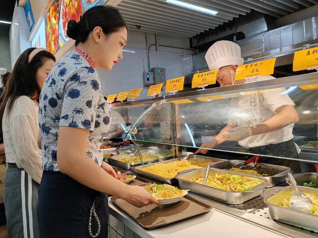 “哇,原来这里还有一家社区食堂!”中午,来自东航客舱部的15名乘务员来到虹桥机场新村社区食堂顶美小厨,琳琅满目的菜肴吸引了他们的目光。炸猪排、葱烧鲈鱼、肉末蒸蛋、解暑绿豆汤……各色美食品类丰富,色香味俱全。“我选了两个荤菜和一个素菜,分量很足,价格也挺实惠的。”“我觉得这里的菜味道很好,各种口味的菜都有。”乘务员们纷纷为社区食堂竖起了大拇指。