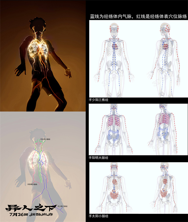 这些异能功法的底层逻辑,都能在中国传统文化中追根溯源,新奇想象的背后是上千年传统文化的积淀。比如,随着张楚岚施展金光术逐渐亮起的人体穴位、最终吸收金光的印堂穴,都源自中医经络学说。而异人们各自擅长的异能招式则是根据不同人物特点融入了八卦掌、八极拳、太极拳、截拳道、蛇拳、通臂拳、翻子拳等传统武术的动作和身法。